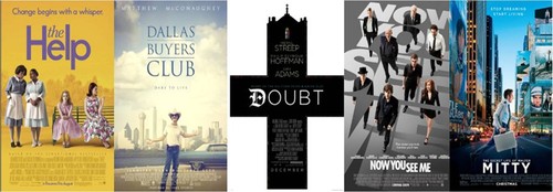 Adorei As Serviçais. Já estava para vê-lo há imenso tempo, mas tinha vindo sempre a adiar. É um filme que, na minha opinião, vale a pena ver. Tem um argumento interessantíssimo, actrizes com qualidade e não tem tempos mortos. Também gostei imenso d'O Clube de Dallas, que está agora nomeado para 6 óscares. Tem também um argumento interessante, actores completamente transformados, como o Matthew Mcconaughey e o Jared Leto e foi muito para além das minhas expectativas. Já a Dúvida não foi tão bom como esperava. Foi interessante, mas as minhas expectativas para este filme eram demasiado altas e não conseguiu superá-las. Conta com a participação de Meryl Streep, Philip Seymour Hoffman, que faleceu no passado dia 2, e Amy Adams. Com Mestres da Ilusão aconteceu a mesma coisa. É um filme engraçado, mas não achei assim tão grandioso como toda a gente mo fez parecer. A vida secreta de Walter Mitty destaco, não pela história ou pelos actores, mas sim pela fabulosa banda sonora.