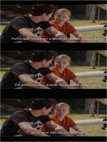 E este excerto do filme, tem tudo a ver. Desde que nos separamos, nunca mais consegui pensar no mau de tudo, só nas coisas boas, e, assim, claro que esquecê-lo se tornou mais dificil. E pronto, ainda bem que vi o filme, porque agora, realmente, consigo ver que, de certa forma, estou melhor sem ele. Havia tanta coisa nele ou que ele fazia ou fez que eu não gostava e se juntar tudo, são mais essas coisas do que as boas. Adeus T, já chega de ti, de pensar no bom que eras, porque foste pior depois, e parece que durante este tempo todo, me esqueci disso.)